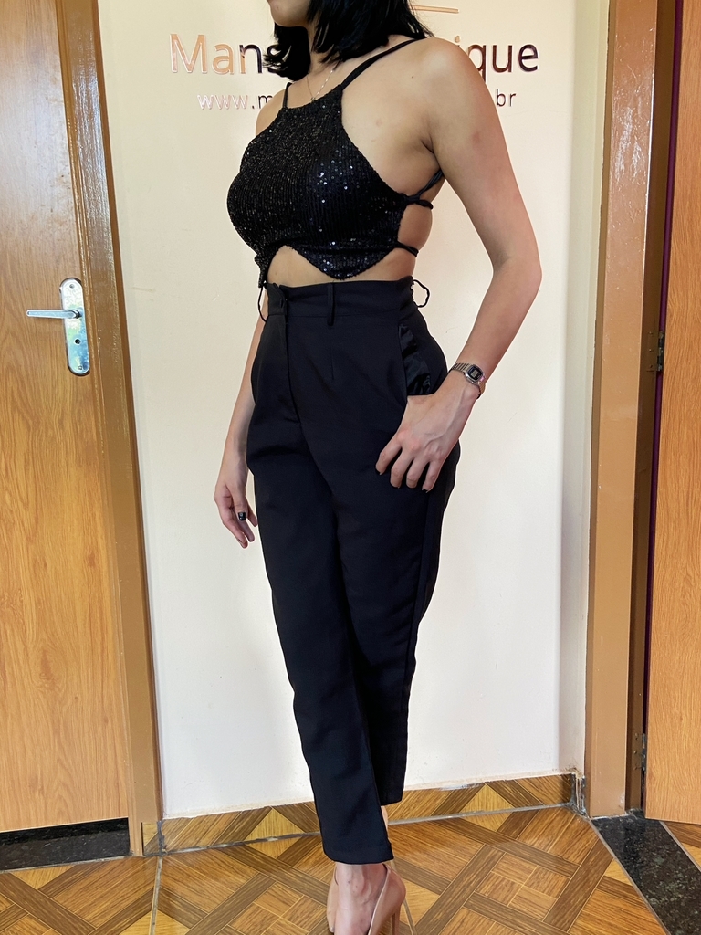 Medidas da modelo: Altura: 1,61 Busto: 86 cm Cintura: 643 cm Quadril: 100 cm.