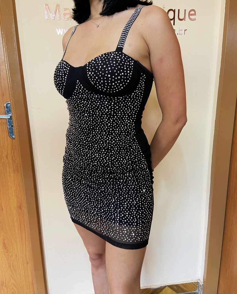 VESTIDO PRETO EM PEDRARIA PARA FESTA.